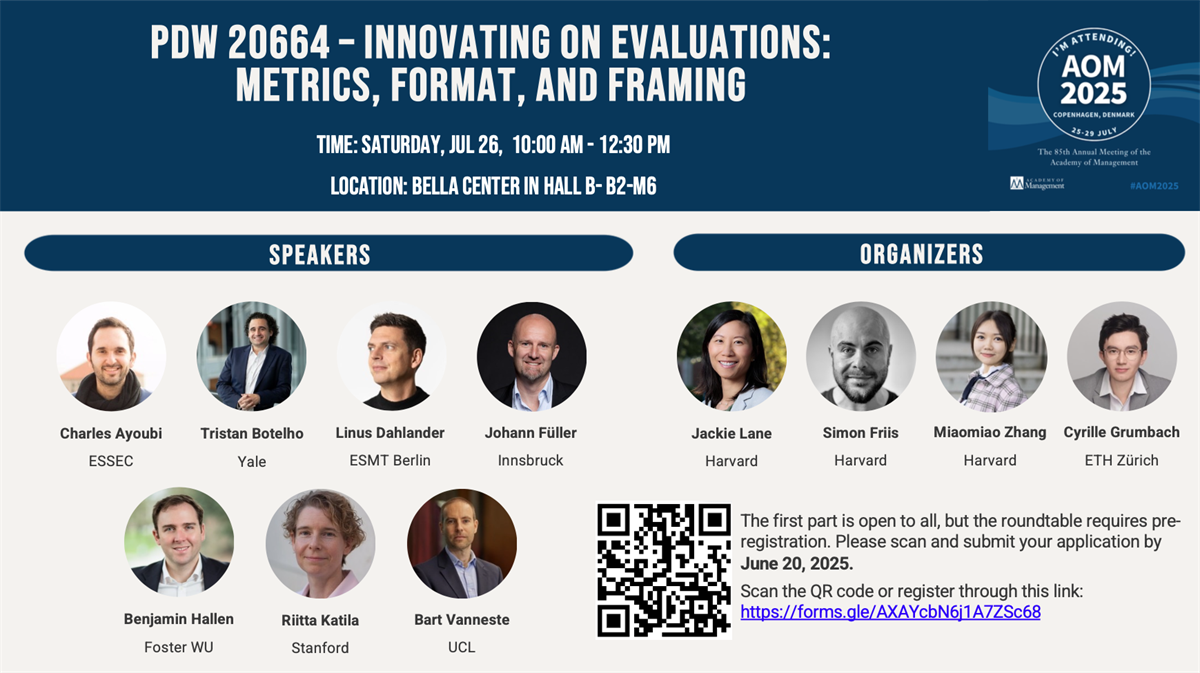 Join us at AOM in Copenhagen for a PDW that brings together leading scholars in the field to explore how evaluations are being rethought-from metrics, formats, framing strategies, and AI.