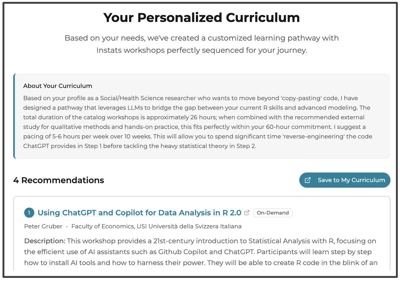 Pathways: Describe your learning goal and get a personalized learning plan or full curriculum-easy to share with PhD students and colleagues. Build your pathway here.